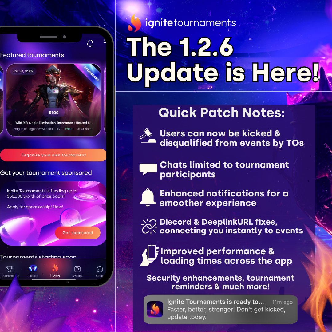 Source : sg.news.yahoo.comIgnite Tournaments on X: “Version 1.2.6 has arrived! This update